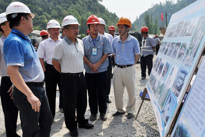 近日,广西交通投资集团总经理刘可(前排左二)深入我公司参建的六寨至河池、河池至都安高速公路项目视察。