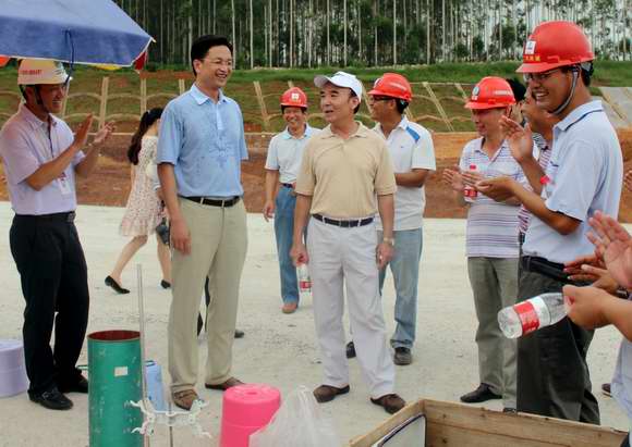 在施工现场,黄华宽书记认真听取了项目建设情况的汇报,对钦崇高速公路建设总体情况表示满意。他强调,钦崇高速公路是崇左乃至东盟通往北部湾经济区的重要通道,各单位、各部门一是要在确保质量和安全前提下,加快钦崇高速公路项目建设步伐,早日完成通车目标任务,促进陆路东盟经济产业快速发展;二是要在建设好钦崇高速公路项目的同时,科学规划,合理布局,完善其他各项基础设施建设;三是要为崇左至靖西高速公路这条西南大通道做好充分的准备工作,力保项目顺利开工建设。