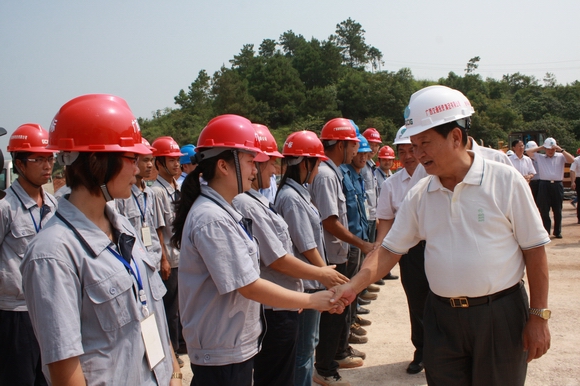 自治区党委常委、南宁市市委书记车荣福与六钦1标广西路桥建设者亲切握手