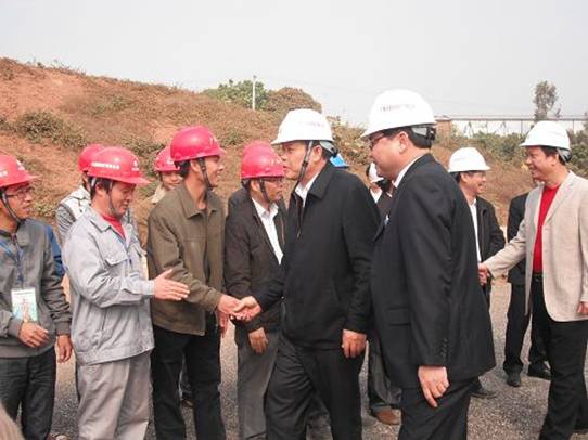 自治区杨道喜副主席与项目一线员工亲切握手