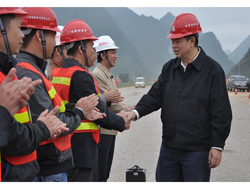 11月22日至23日,自治区交通运输厅厅长潘巍、副厅长梁毅分别莅临广西路建公司靖那路、钦崇路、玉铁路等项目检查调研,了解项目旱季施工情况,亲切慰问奋战在施工一线的广大员工,要求各项目把握好有利时机,坚决打赢旱季攻坚战,以优异的成绩促进交通建设发展。