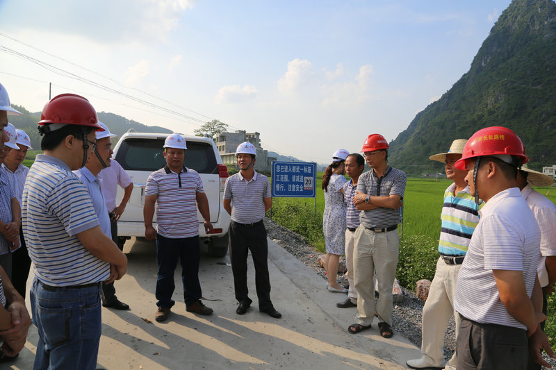 9月10日至11日,集团公司董事长朱坚和、总经理李定伦、副总经理刘明洪等领导深入都安至武鸣公路、大化至巴马公路建设一线,全面检查项目年底通车建设进展情况。集团公司投资发展部、企业部负责人,路桥建设公司赵亚飞董事长、翔路公司罗光董事长等领导人员陪同检查。