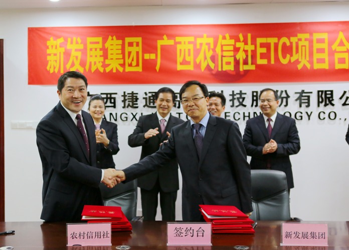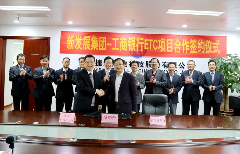 2016年3月2日、3月4日,集团公司分别与中国工商银行广西区分行、广西农村信用社签订ETC项目合作协议,标志着新发展集团多措并举全面全力推广拓展ETC项目又迈出了坚实的步伐。