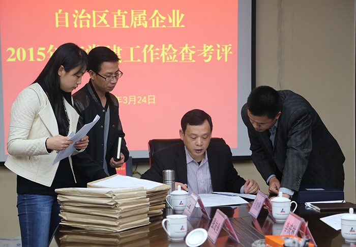 3月24日,自治区国资委2015年度华体会官方版网站登录入口考评小组对我集团公司2015年度华体会官方版网站登录入口进行实地检查。自治区国资委副主任王晓华带队开展检查考评,我集团公司党委书记、董事长朱坚和在迎检分工会上作华体会官方版网站登录入口情况汇报,集团公司在家领导以及相关部门人员参加会议。