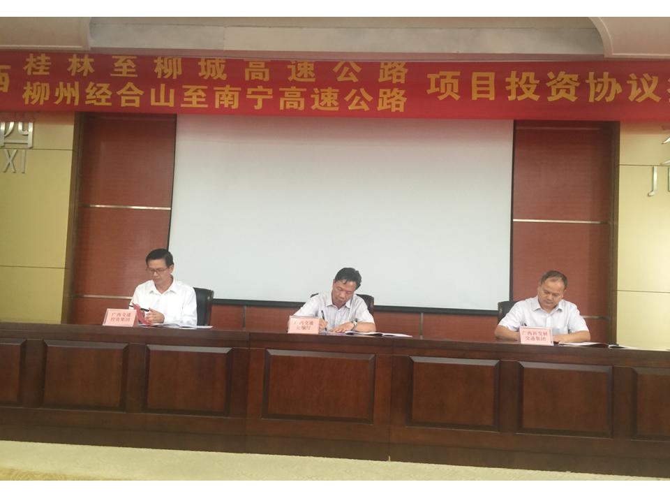 7月29日,广西柳州经合山至南宁高速公路项目投资协议签约会在自治区交通运输厅会议室召开,会议由综合规划处张雪莲副处长主持,自治区交通运输厅李小林副厅长参加签约仪式并做了重要讲话。自治区交通运输厅政策法规处、综合规划处、财务处,南宁市市政府,柳州市市政府均派代表出席了会议,唐咸秋总经理作为广西新发展交通集团与广西交通投资集团联合体的代表出席会议,并签署了《柳州经合山至南宁高速公路项目投资协议》。