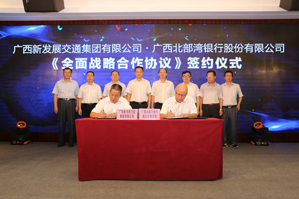 图一:集团公司党委副书记张友坐与广西北部湾银行副行长陈捷