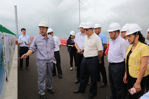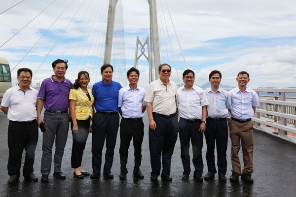 近日,广西新发展交通集团党委书记、董事长朱坚和陪同自治区人民政府副主席陈刚视察港珠澳大桥工程项目。陈刚副主席对港珠澳大桥工程项目施工质量表示称赞。