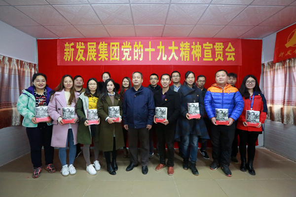 11月25日上午,集团公司董事、党委副书记、工会主席张友坐在永福至三皇公路№1标项目部为团员青年们上团课,就党的十九大精神为大家作解读,对青年朋友提出了四点希望,一是要不忘初心,志存高远,做一个有理想的人;二是要牢记新发展集团五种精神,做一个有担当的人;三是要坚持学习,勇于实践,做一个有本领的人;要严格自律,忠诚干净,做一个守纪律的人;四是争做推进企业转型升级、二次创业的骨干力量,凝心聚力推动集团公司做强做优做大。张友坐副书记还向团员青年及永福县团委赠送了《习近平的七年知青岁月》《习近平用典》、《习近平讲故事》等书籍。鼓励青年员工多读书,补足精神之钙,汲取榜样力量,用先进的思想武装头脑,指导工作。