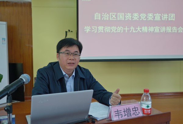 12月5日,韦增忠主席给都巴高速全线70多名的党员骨干宣讲党的十九大精神。他从充分认识学习宣传贯彻党的十九大精神的重要意义,全面准确学习领会党的十九大精神,以党的十九大精神为指引、掀起项目建设新高潮等三个方面进行了全面、生动的宣讲,还紧密联系广西国企国资实际,深入剖析了广西国企国资在发展中存在的问题,结合广西国企国资十三五规划目标详细阐述了工作思路,给一线项目建设明确了目标、理清了思路。结合到新发展集团的实际,韦增忠主席指出,集团公司离年度目标任务的完成已进入全力冲刺阶段,大家要以十九大精神为指引,撸起袖子加油干,不断地掀起集团项目建设新高潮,以优异的成绩检验学习贯彻落实党的十九大精神成效。韦增忠主席的宣讲既紧紧围绕党的十九大精神的精髓,又切合县县通高速公路建设的实际,深入浅出、通俗易懂,引起与会党员的强烈共鸣。