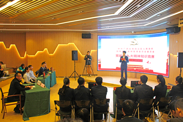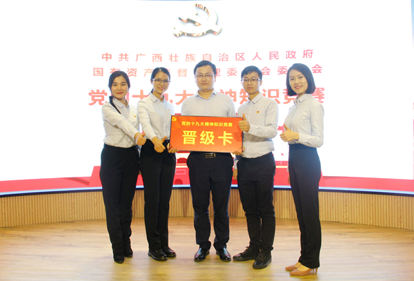 据悉,此次学习十九大精神知识竞赛共有31支队伍参赛,初赛将决出6支优胜队伍参加于12月19日举行的决赛,决赛全程在广西电视台录制并择机播放。目前,由翔路公司、设计院、一卡通等单位5名员工组成的集团公司代表队正在积极备战决赛。