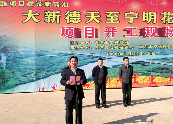 12月20日,崇左市大新德天至宁明花山公路举行开工仪式,集团公司党委书记、董事长朱坚和,集团公司党委副书记、副董事长、总经理唐咸秋,路桥工程集团及设计院有限公司相关负责人参加了开工仪式。