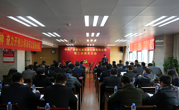 会议在庄严的国歌声中开幕。会上,集团党委副书记张友坐宣读了集团公司关于同意公司召开第二次党员大会的批复等有关文件。新恒通公司党总支书记赖水平代表第一届总支部委员会向大会作了题为《适应新形势,抓住机遇,推动公司事业不断实现新发展》的工作报告。