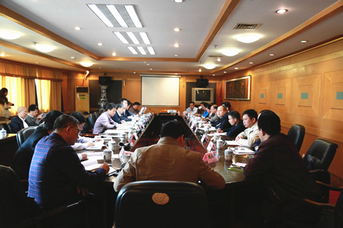 图一:集团公司党委书记、董事长朱坚和在洽谈会上讲话