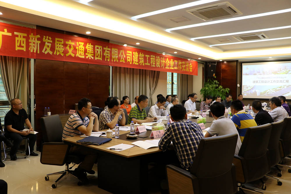 4月28日下午,集团公司在路桥集团路桥·锦绣城项目部二楼会议室召开建筑工程设计企业工作交流会。集团公司党委副书记、副董事长、总经理唐咸秋出席会议并讲话,集团公司副总经理李德智主持会议,集团公司投资改革发展部、企业管理部,交通设计院有限公司、建筑材料科学研究院、人防设计研究院、教育建筑设计院、路桥集团、路建集团及广路集团主要负责人、分管市场(房地产)开发的领导及相关部门(企业)负责人共38人参加会议。