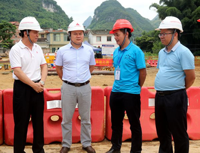 在为期两天的督查工作中,督察组一行沿着融河高速主线纵向便道深入到施工建设一线,重点对武阳江大桥、双合隧道、罗城服务区、古毛大桥、小隘特大桥等关键控制性工程的建设进展情况进行实地调研督查,同时对指挥部、总经理部及五个分部进行质量、安全内业资料检查。督察期间,唐咸秋与河池市政协副主席苏志宏就融河高速沿线征拆工作、高压杆线迁移等问题进行了磋商,并与设计单位就相关设计问题进行探讨。