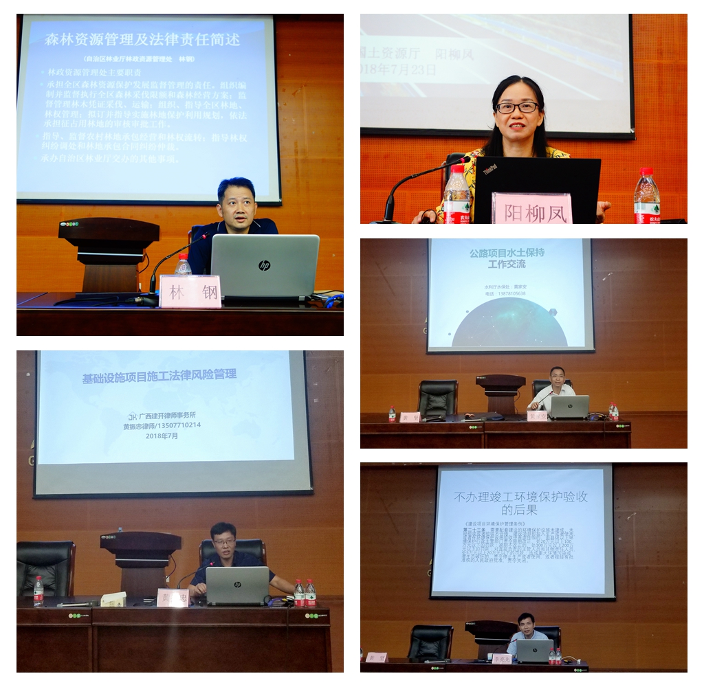此次培训邀请了自治区国土资源厅规划处副处长阳柳凤、林业厅林政处副处长林钢、环境保护厅环评处处长李亮光、水利厅水土保持处副处长黄家安以及广西建开律师事务所主任黄振忠律师5位专家围绕项目建设过程中的国土、林地、环境保护、水土保持以及项目经营常见法律政策问题进行专题授课。此次培训紧贴建设项目管理的实际需求,内容丰富,针对性强。通过培训,提高了广大建设项目管理人员的法律政策水平,增强了处理具体法律问题的能力,对今后依法依规建设项目起到很好的促进作用。
