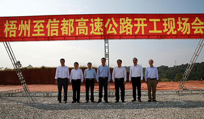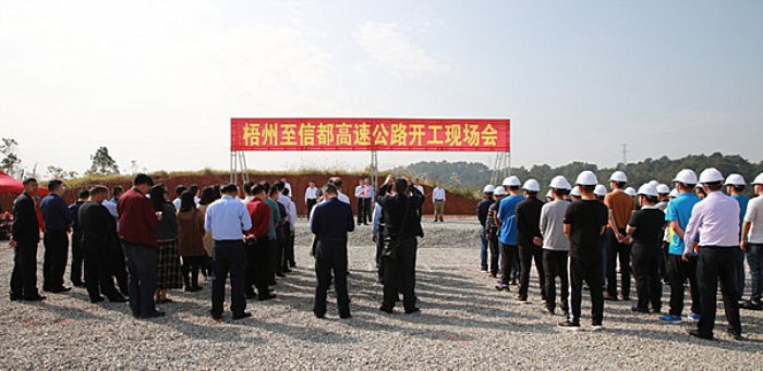 12月6日,梧州至信都高速公路开工现场会在梧州市苍梧县旺甫镇西侧古塝接梧州环城高速处顺利举行。自治区交通运输厅巡视员李小林,梧州市市委书记全桂寿,贺州市副市长陈翼明,新北投集团副总经理李德智,梧州、贺州两市有关市直单位,高速公路沿线相关区、县党委、政府主要负责人参加了会议。会议由新发展交通集团广西新恒通高速公路有限公司党委书记、董事长赖水平主持。