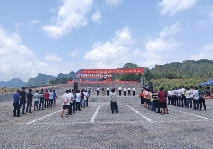 开工现场会在河池市都安瑶族自治县召开。广西北部湾投资集团有限公司党委副书记、副董事长、总经理高新宣布项目开工。自治区高速公路管理局局长周北,河池市委常委、市人民政府常务副市长韦朝晖等领导参加会议。