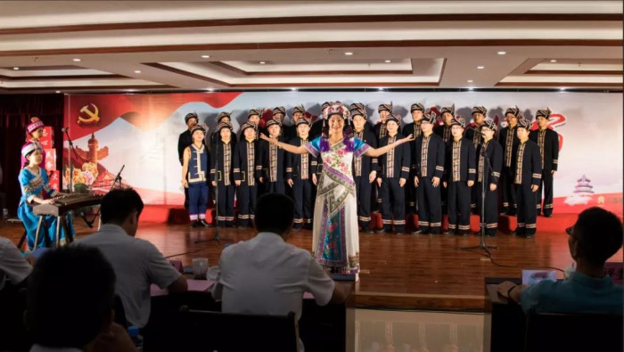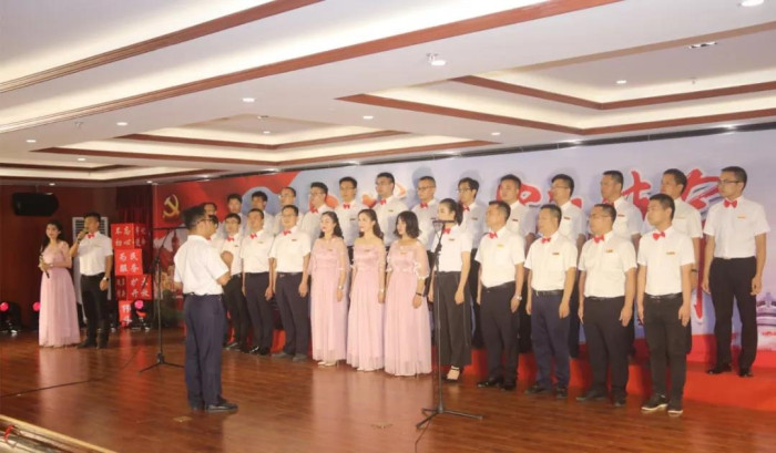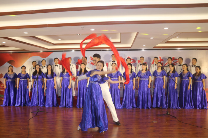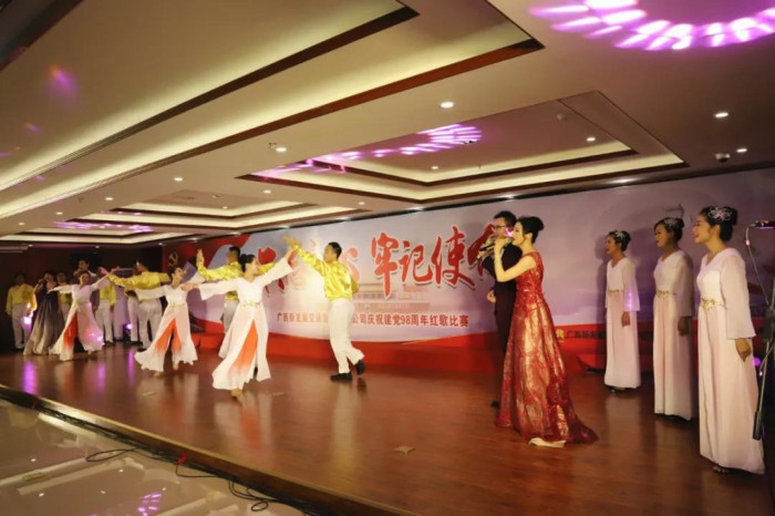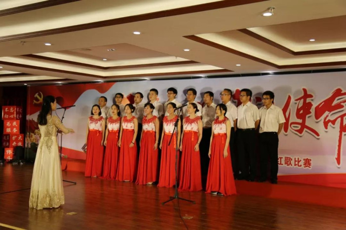 来自新发展集团本部,各直属单位、指挥部的11支代表队欢聚一堂,用满腔热情唱响红色旋律,歌颂党的恩情,献礼建党98华诞。其中,新发展集团本部吟唱余音渺渺的《爱国歌》,用现代舞和朗诵的形式表现个人与祖国血脉相连、风雨同当的情愫,最终拔得头筹;钦北改扩建指挥部、人防设计院紧紧结合“不忘初心、牢记使命”主题教育的根本遵循,分别合唱《不忘初心》《走向复兴》两首曲目,并做到演唱连贯、节奏鲜明、情绪准确,分别获得二等奖;大浦公司、融河高速指挥部、钟昭高速指挥部则在确保歌曲的完整度、准确度、协调度的同时,在服装、队形、伴奏上别出心裁,最终获得三等奖;其余队伍也各具特色,使所选红歌绽放出灿烂的光彩,展现出新发展集团奋斗拼搏的精神面貌。